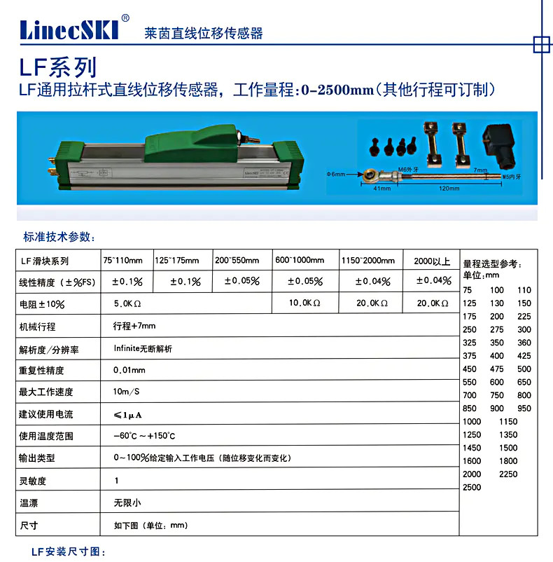 萊茵系列直線位移傳感器(電子尺)選型指引