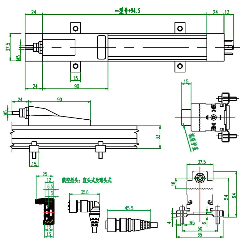 LF滑塊式直線位移傳感器(別名:電子尺,電阻尺,電位器,位移傳感器)原理:電位計原理,所有傳感器為位置測量型,用于調節系統(控制系統)和測量系統中,對位移和長度進行直接測量,輸出直流電壓信號,也可以通過內置或者外置的V/A變送模塊講信號轉換成標準的0-5V、0-10V或者4-20mA直流信號,也可以遠距離傳輸控制要求。LF滑塊式直線位移傳感器(別名:電子尺,電阻尺,電位器,位移傳感器)輸出位移變化:0-100%給定輸入工作電壓(隨位移變化而變化)。