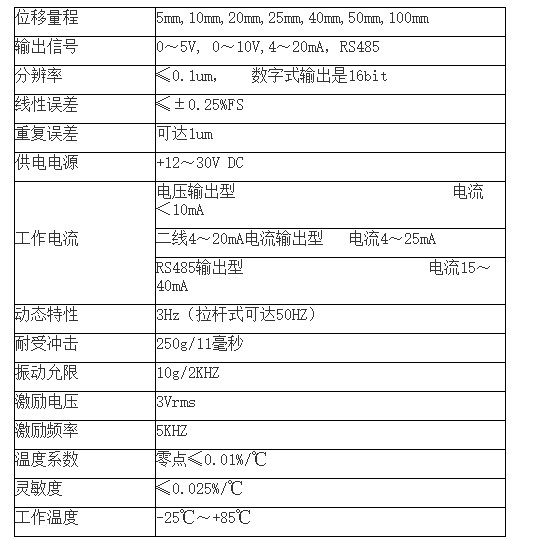 直流LVDT具有優良的性能,采用方便的單電源+12~24V DC供電, 電子電路密封在304不銹鋼金屬管內,可以在潮濕和灰塵等惡劣環境中工作,輸出信號為標準的可被計算機或PLC使用的0-10V或4-20mA輸出。