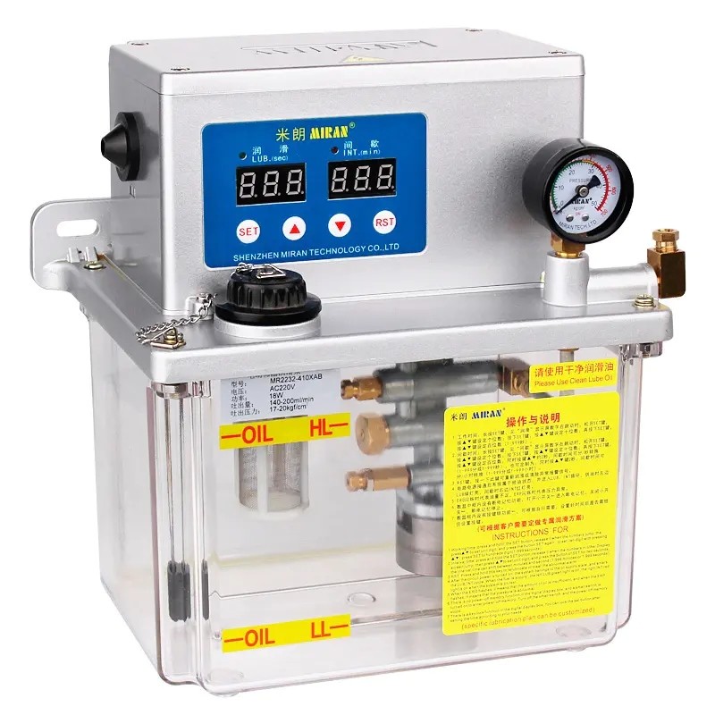 稀油油脂電動潤滑油泵微電腦型特點:流量200-300ml/min,額定注油壓力20-40Kgf/cm,操作方式微電腦,電機電壓220/110VAC,電機功率25W,潤滑油粘度范圍30#~00#,油箱容積4L,出油口管道Φ6mm,適用系統抵抗式/容積式。