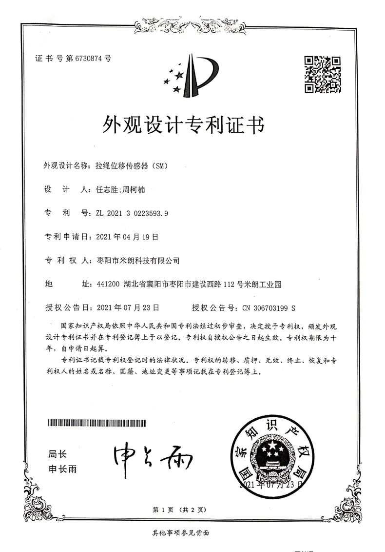 SM-S型拉繩位移傳感器的接線方式與安裝尺寸(底面螺絲安裝式)、其他證書: