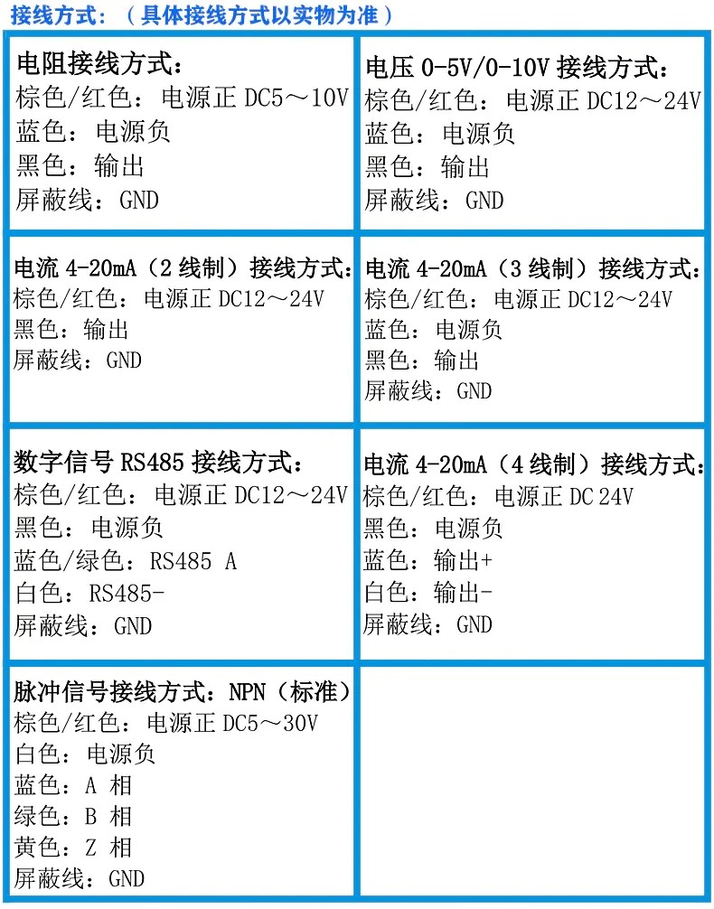 電流輸出型:4-20MA (二線制,三線制),