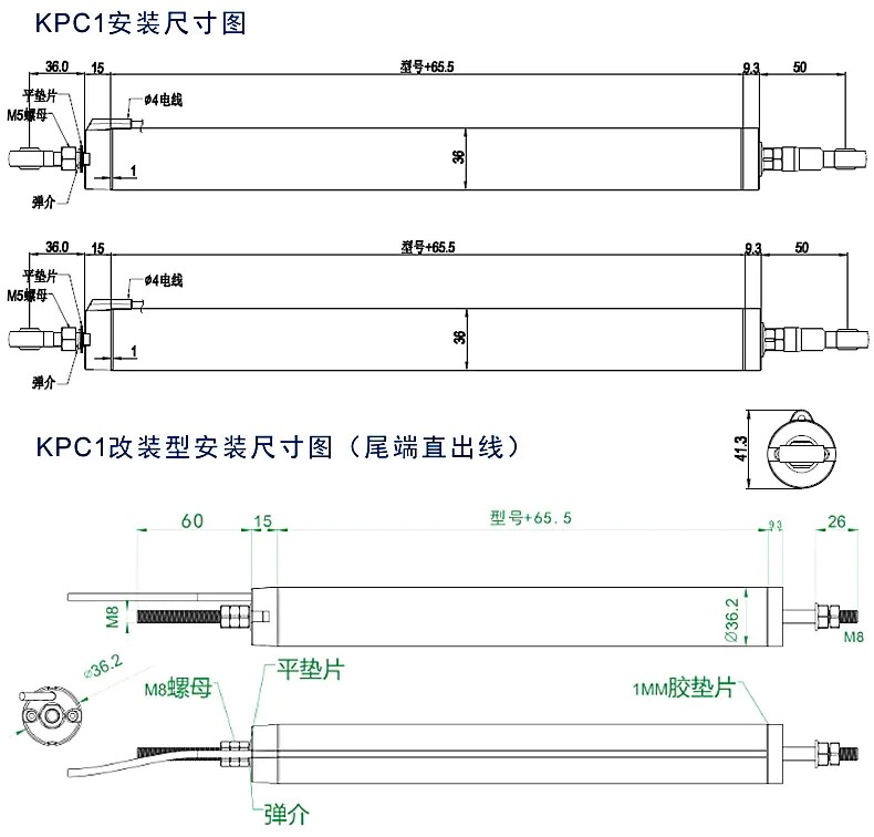 KPC1兩端魚眼鉸接式電子尺的參數及安裝尺寸: