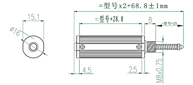 KSP圓管微型自復位式位移傳感器的技術參數及安裝尺寸: