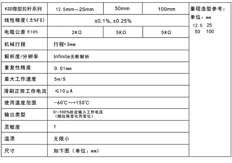 KSD直線電位器/直線位移傳感器13FLP的技術參數: