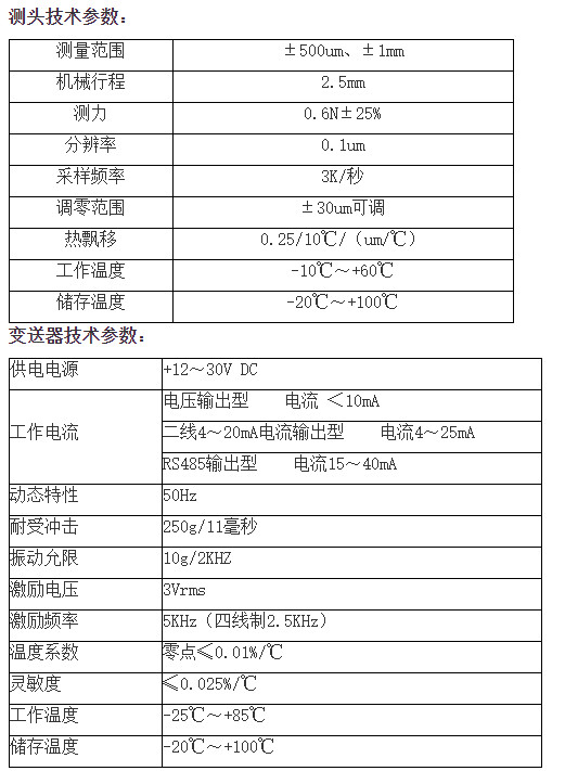 間隙傳感器技術(shù)參數(shù):