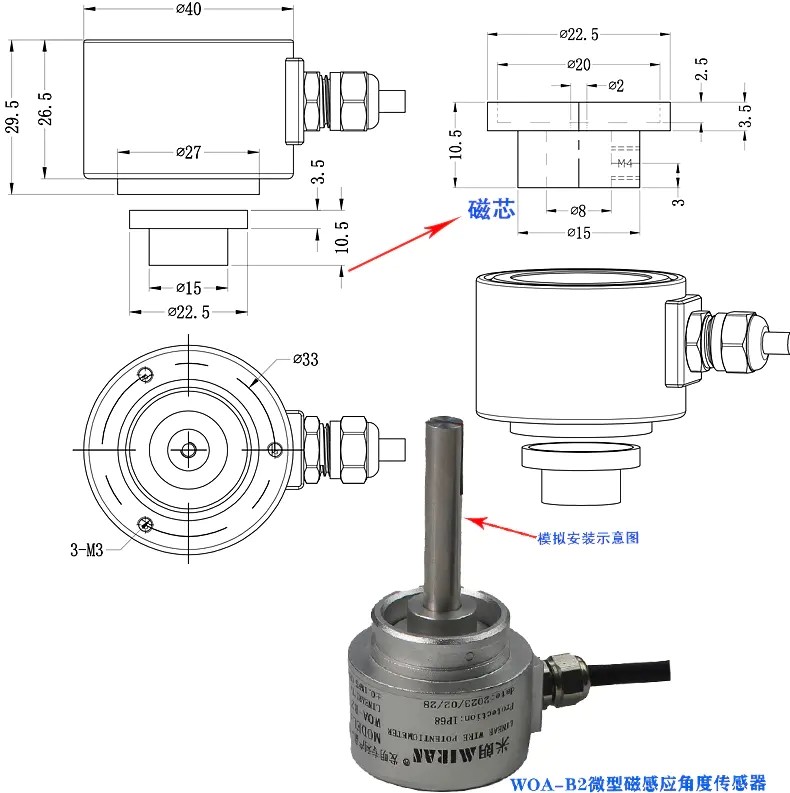 WOA-B2微型磁感應角度傳感器安裝尺寸: