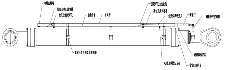 6,如安裝時閘門處于全開或全關狀態,連接測量桿時可查看測量桿上的“滿量程標記線”(全開安裝時查看)或“零點標記線”(全關安裝時查看)是否在管口,標記線可略進入管內(一般進管內20mm以內即可,不可過多,以防行程不夠),但不可露出,如標記線露出管口,應調整測量桿或導向套管,使其不在管口之外,(在空間寬裕的前提下,調整測量桿連接抱箍zui簡單),此操作為防止全關時測量桿處于霍爾傳感器檢測盲區位置;如安裝時閘門不處于全開或全關狀態,請按圖紙標注位置安裝,導向套管與油缸安裝座對齊,見安裝圖,抱箍位置可根據情況適當調整;