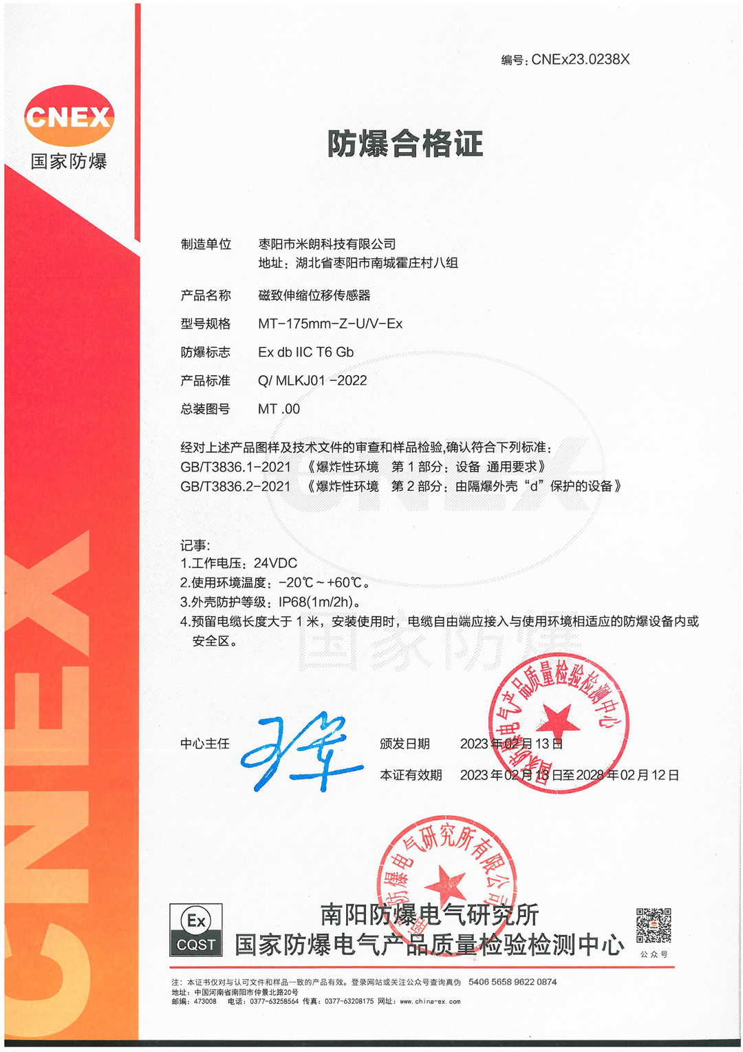 您的位置:主頁  > 榮譽資質  > 磁致尺防爆證書IIC級