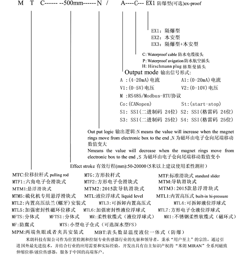 六、MR1不銹鋼軟纜式磁致伸縮位移傳感器選型: