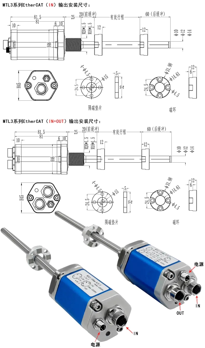 MTL3磁致伸縮位移傳感器尺寸圖: