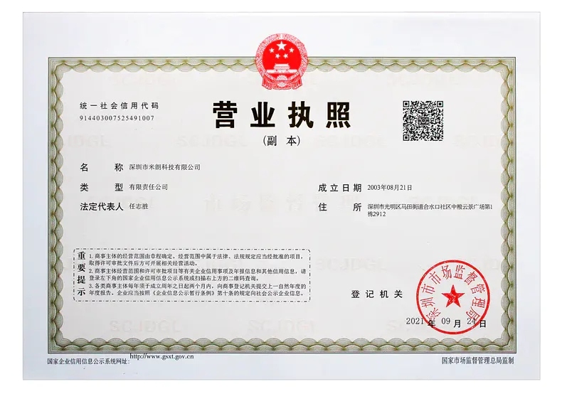 深圳米朗公司營(yíng)業(yè)執(zhí)照